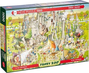 Chcete mít doma vlastní ZOO? Vytvořte si ji z puzzle ze série HEYE Šílená ZOO (Funky ZOO) , kterou vtipně ztvárnil známý karikaturista Marino Degano. Jednotlivé motivy se zvířecími "pavilony" lze zavěsit vedle sebe v libovolné kombinaci a vytvořit tak ZOO podle vlastních představ. Okrajové prvky (obloha, řeka, keře, cesta) jsou totiž namalovány tak, aby na sebe obrázky ze série Šílená ZOO vždy navazovaly, ať už jsou poskládány v jakémkoliv pořadí.