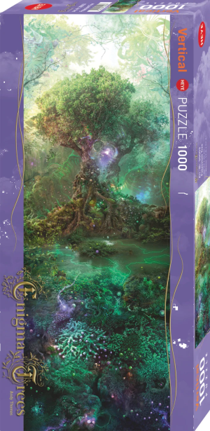 Vertikální puzzle ze série Enigma Trees balené v krásné panoramatické (vertikální) krabičce. Rozměr složeného puzzle cca 33 x 95 cm