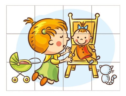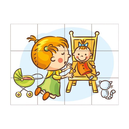 Při jejich správném poskládání se zobrazí jeden ze šesti obrázků, hra tím napomáhá rozvíjet u dětí logické uvažování, fantazii a jemnou motoriku.