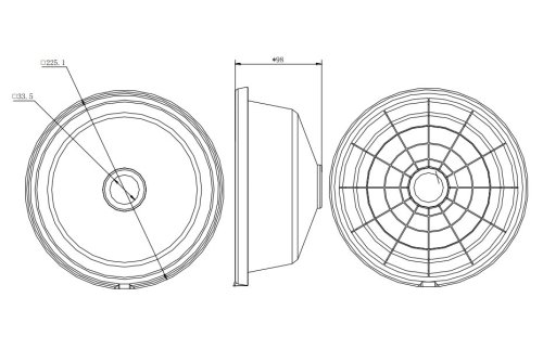 Rozměry: 225,1 × 225,1 × 98 mm
