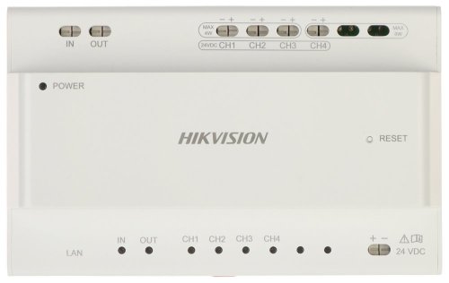 Video/audio distributor (rozbočovač) je určený pro modulární 2drátové domovní systémy Hikvision řady Y. Umožňuje připojit a napájet bytové monitory, externí panely či dveřní stanici.