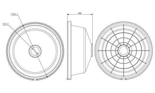 Rozměry: 225,1 x 225,1 x 98 mm