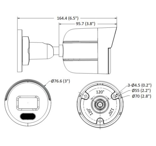 Objektiv: f = 2,8 mm, pevný, úhel záběru horizontálně 106°, vertikálně 57°, diagonálně 126°