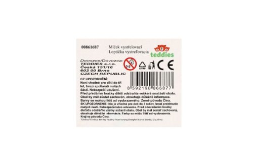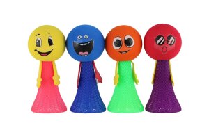 Vyskakující míček z pěny zabaví snad každého! Míček má i ručičky a také tělo, které je z bužírky. Tělo postavte na stůl či zem. Stlačte a pusťte! Míček parádně vyskočí. Velikost míčku s tělem: 10 cm Vhodné pro děti od 3 let.