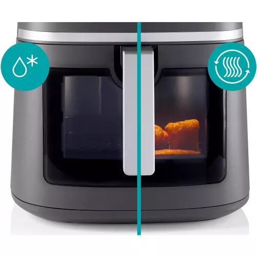 Dopřejte si chutné a zdravé pokrmy s minimem tuku díky prémiové horkovzdušné fritéze Hisense HAF1600D. Tento moderní kuchyňský pomocník s objemem 5,2 litru a výkonem 1600 W přináší revoluci do vaší kuchyně. Díky pokročilé technologii Cross Wave s optimalizovanou cirkulací vzduchu a vlnitým dnem dosáhnete rovnoměrného propečení každého sousta bez nutnosti častého obracení. Elegantní černý design s praktickým průhledným okénkem umožňuje sledovat průběh přípravy, aniž byste museli fritézu otevírat.
