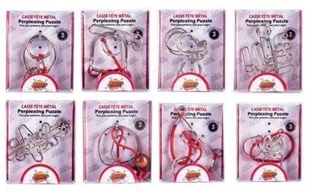 Tento hlavolam potrápí Vaši hlavu i ruce. Hlavolamy posunují hranici trpělivosti a rozvíjí jemnou motoriku a paměť.Cena uvedena za 1kus! mix druhů v krabičce 8,5x10x2cm 24ks v boxu. Více druhů - náhodný výběr.