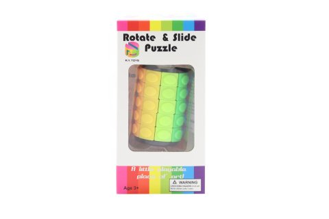 Plastový hlavolam ve tvaru válce. Pomocí otáčení a posouvání lze pohybovat částmi hlavolamu. Rozměr hlavolamu cca 7 cm. Rozměry balení cca 7 x 14 x 5,5 cm. Věk 3+