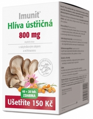 IMUNIT Hlíva ústřičná 800 mg s rakytníkovým olejem a echinaceou je prémiový doplněk stravy renomované a tradiční výrobkové řady IMUNIT®, která se vyznačuje vysokou kvalitou surovin a unikátními technologiemi zpracování. Obsahuje vyváženou kombinaci 5 synergicky působících složek: hlívu ústřičnou, rakytníkový olej, echinaceu, nukleotidy a selen.