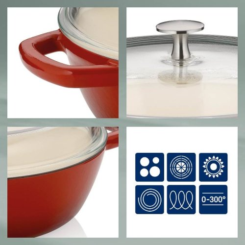 Litina smaltovaná červená/béžová 28cm , 16cm v, 3,8L