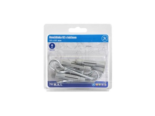 rozměry (pr. x D): 10 x 61 mm materiál: bílý zinek háček 6 ks
