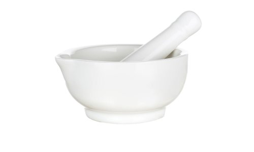 Keramický hmoždíř Collezione Bianca s tloučkem pro klasické drcení koření a bylinek. Vnitřní část je neglazovaná pro lepší drcení. Průměr 11.5 cm a výška 6 cm. EAN 8591022398654
