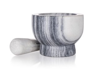 Mramorový hmoždířCULINARIA s tloučkem pro klasické drcení koření, bylinek a výrobu domácího pesta. Hmoždíř si najde své místo v každé kuchyni jako užitečný pomocník i ozdoba. TIP: Je dobré nakupovat celé koření, jelikož mleté koření časem ztrácí chuť a vůni. Proto je dobré si potřebné množství vždy čerstvě rozmělnit například v hmoždíři.