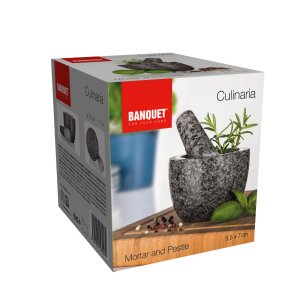 Žulový hmoždíř CULINARIA s tloučkem pro klasické drcení koření, bylinek a výrobu domácího pesta. Hmoždíř si najde své místo v každé kuchyni jako užitečný pomocník i ozdoba.