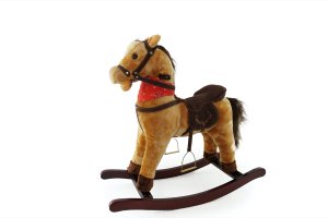 Hnědý houpací koník, který vydává zvuky při stlačení jednoho nebo druhého ouška. Řehtá a kluše. Na krku má moderní šátek. Koník je vyroben z kvalitní a hebké plyše. Nosnost 30 kg.