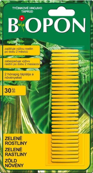 Hnojivové tyčinky jsou určeny pro všechny zelené rostliny. Dodávají rostlině živiny po dobu 2 měsíců. Koncentrované hnojivo ve formě tyčinek pro pohodlné používání. Stačí umístit tyčinku do květináče a aktivuje se uvolňování minerálních složek nezbytných pro pravidelný růst zelených rostlin. Přiměřený obsah fosforu a draslíku rostlinám zaručuje optimální podmínky pro rozvoj. Složení: dusík-fosfor-draslík (12-6-9). Dávkování: dle velikosti květníku. Balení: 30 ks.