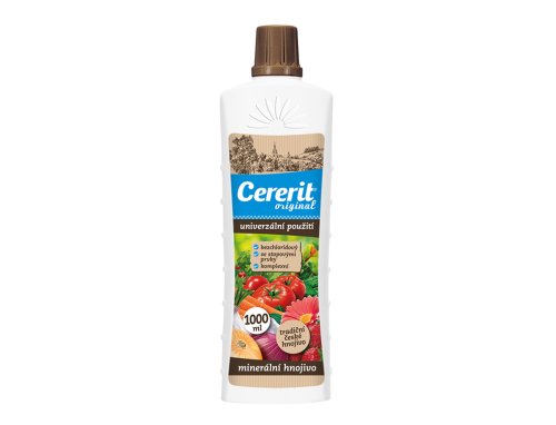CERERIT je plnohodnotné kapalné univerzální hnojivo s obsahem mikroprvků. Má široké použití při hnojení okrasných rostlin, ovoce, zeleniny a také balkónových a pokojových rostlin. Podporuje zdravý růst rostlin a u květin i bohatou násadu květních poupat a následné kvetení.
