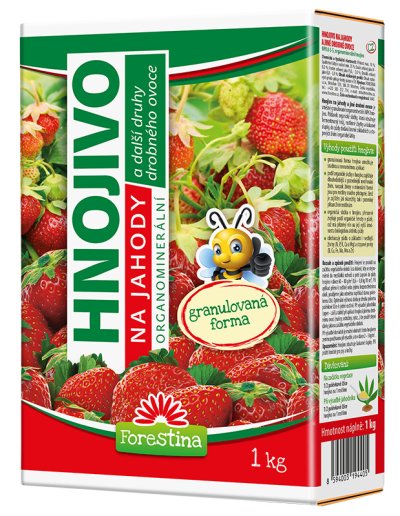 Hnojivo na jahody a jiné drobné ovoce je směsné granulované organominerální NPK hnojivo. Přídavek organické složky, která obsahuje fermentovaný hnůj, rostlinné zbytky a kakaové slupky, do půdy dodává kromě základních a stopových živin i organické látky.