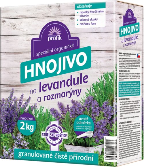 Dopřejte levandulím a rozmarýnu výživu, kterou si opravdu zaslouží. Speciálně vyvinuté Profík hnojivo je vyrobeno z přírodních surovin živočišného původu, kakaových slupek a mořské řasy. Je bohaté na organické látky, esenciální aminokyseliny i stopové prvky a díky svému složení podporuje zdravý růst, bohaté kvetení i odolnost rostlin vůči nepříznivým podmínkám. Ideální pro pěstitele, kteří hledají šetrné a dlouhodobě účinné řešení.