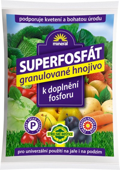 Nejrozšířenější fosforečné hnojivo (koncentrované) – vodorozpustná forma znamená rychlý účinek hnojiva. Fosfor – podporuje tvorbu kořenového systému a násadu květů, umožňuje využití sluneční energie rostlinou pro podzimní a jarní hnojení. Vhodné k přidávání do kompostů. Dávkování: 1 kg hnojiva vystačí cca na 17 – 50 m2 dle typu rostliny.