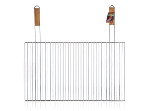 Rošt grilovací BBQ 68 x 40 cm. rozměry: 68 x 40 cm materiál: ocel, dřevo Hranatý grilovací rošt BBQ s dřevěnými rukojeťmi využijete pro snadné grilování masa, zeleniny apod.