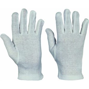 Rukavice bez manžety šité z jemného běleného úpletu podle střihu fourchett Materiál rukavice: 50 % bavlna , 50 % polyester EN ISO 21420