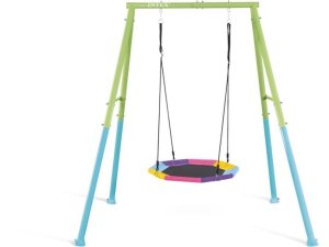 Ocelová houpací sestava Intex s barevnou osmihrannou houpačkou.