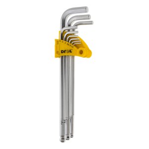 Sada imbus 1,5 - 10 mm, 9díl., kulička, prodloužený, DREL materiál: CrV ocel Sada 9 šestihranných klíčů s kuličkovým zakončením z chromované oceli.