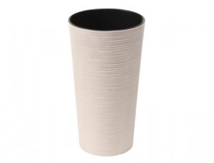 Vysoký plastový obal na květník s vnitřní vložkou má unikátní vzhled připomínající proutí.
