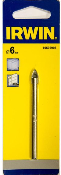 Vrták do dlažby a skla 6 mm IRWIN Průměr: 6 mm Uchycení/stopka: válcová Způsob vrtání: rotační Tvrdokovový břit ve tvaru kopí vyřezává čisté kruhové otvory s minimálním štípáním skla, obkladů a …
