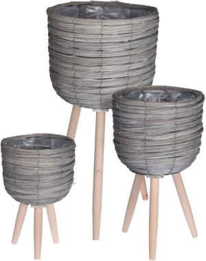 - sada 3 vysokých květináčů od značky PROGARDEN- vhodné pro venkovní i domácí použití- květináče jsou pletené z dřevěného proutí- jsou postavené na 3 vysokých dřevěných nohách- všechny obsahují vnitřní …