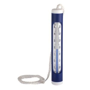Závěsný teploměr pro měření bazénové vody pod hladinou bazénu.