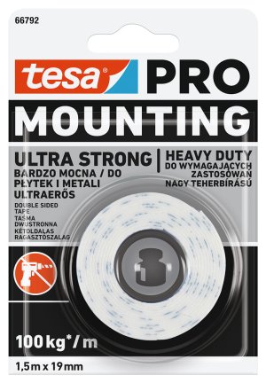 Páska montážní Ultra Strong 19 mm x 1,5 m TESA. rozměry: 19 mm x 1,5 m Naše nejsilnější montážní páska se hodí k bezpečnému upevnění objektů nastálo.