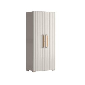 Vysoká plastová skříň, uzamykatelná, nastavitelné police, nosnost 30 kg, IPX3, dřevěná madla.