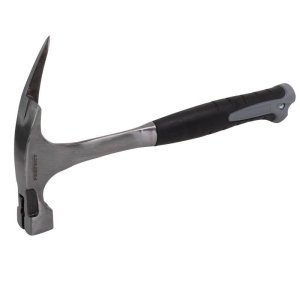 hlava a násada z jednoho kusu oceli dvoukomponentní rukojeť úderová plocha kladiva s hlubokými drážkami pevná špice k páčení výřez s magnetem štěrbina k vytahování hřebíků