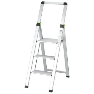 3stupňový žebřík s madlem Maximální zatížení 150 kg Rozměry v rozloženém stavu: 1287 x 466 x 750 mm Rozměry ve složeném stavu: 1413 x 466 x 55 mm Výška madla 600 mm Šířka plošiny: 330 mm Materiál: Čtvercový …