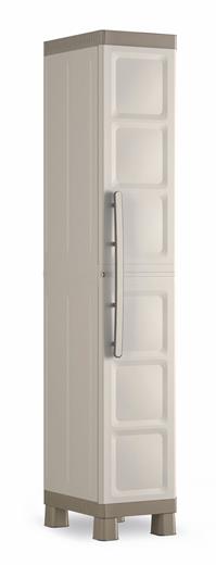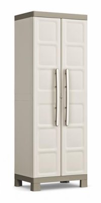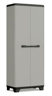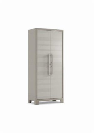 Skříň s 8 nastavitelnými policemi, ideální na terasu, do pergoly, dílny nebo na zahradu, odolnost vůči vodě, UV záření, povětrnostním podmínkám, recyklovaný plast, ergonomická madla.