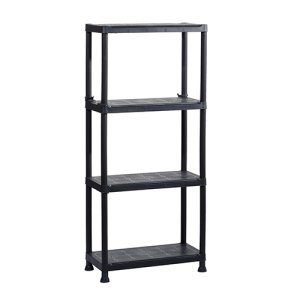 Bezúdržbový regál pro multifunkční využití v garážích, dílnách i domácnosti, 4 poličky, nosnost jedné police 20 kg, zvýšené nožičky pro snadné čištění podlah, vysoká odolnost.