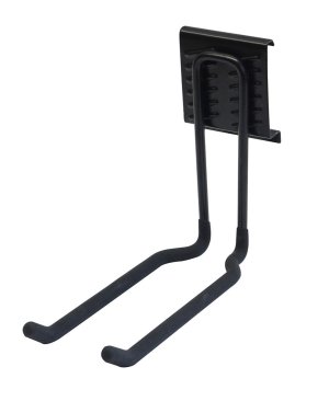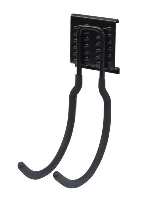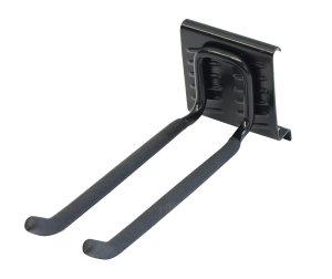 Univerzální držák na nářadí G21 BlackHook double needle se používá k zavěšování sportovního vybavení, zahradnického náčiní a dalšího nářadí, např. lopat, košťat apod.