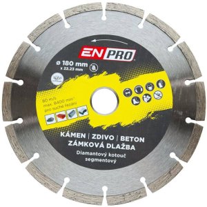 segment v x š: 7,5 x 2-2,6 mm průměr otvoru: 22,23 mm určen na kámen, zdivo, beton, zámková dlažba, žula, mramor vhodný pro suchý i mokrý řez Diamantové kotouče prémiové značky ENPRO, která je zárukou …