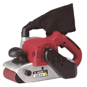 Ruční pásová bruska s elektronickou regulací otáček a automatickým napínáním brusného papíru.