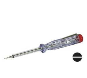jednoduchá fázová zkoušečka s plochým šroubovákem slouží k detekci živých vodičů, otevřeného okruhu, testování pojistek