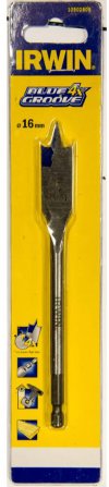 Vrták do dřeva plochý BLUE GROOVE 16 mm IRWIN Rozměry: 16 mm Délka vrtáku: 157 mm Stopka: šestihranná 4 x rychlejší než standardní ploché vrtáky.