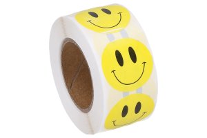 Páska o velikosti 2,5cm x 14m, 500ks nálepek - Žlutý smajlík.