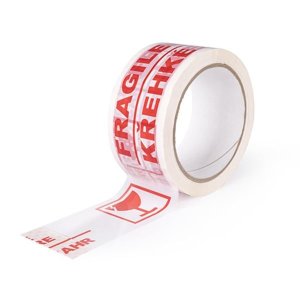 Balicí páska s nápisem Fragile (Křehké) a piktogramem skleničky Páska je určena pro přelepování a značení obalů s křehkým obsahem Akrylové lepidlo založené na bázi vody, po aplikaci dosahuje velmi rychle …