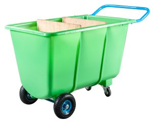 Praktický manipulační vozík o objemu 400 l je ideálním pomocníkem do dílny, skladů, provozú, zahradnictví či úklidových služeb.