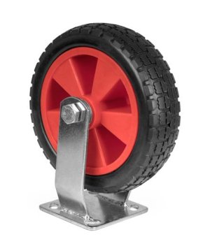 průměr: 200 mm nosnost: 120 kg Otočné kolečko s brzdou, které je určeno pro nerovné a tvrdé povrchy, často montováno u kontejnerů na tříděný odpad.