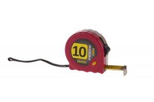 Svinovací metr pro přesné měření rozměrů, délka až 8 m, aretační mechanismus pro zajištění naměřené hodnoty, spona na opasek, řemínek na ruku, vysoce odolný ABS plast.