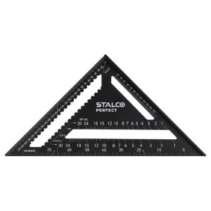 Tesařský úhelník rozměr: 600 x 300 mm materiál: pružinová ocel stupnice v mm - přesnost 0,5 mm/m Tesařský úhelník z jednoho kusu tvrzené pružinové oceli, stupnice v mm - přesnost 0,5mm/m.