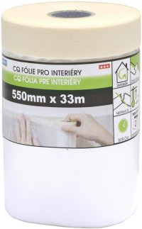 Páska krycí interiérová 55 cm x 33 m, samolepicí, se zakrývací folií. rozměry: 55 cm x 33 m - CQ fólie pro interiéry - nosič hladký krep, lepidlo kaučuk - materiál HDPE, síla 0,010 mm - odstranitelná …