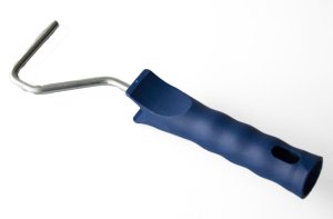 držák válečku pochromovaná konstrukce držáku velká plastová ergonomicky tvarovaná rukojeť možnost zasunutí na teleskopickou tyč celková délka držáku 27 cm šířka násady na váleček 10 cm